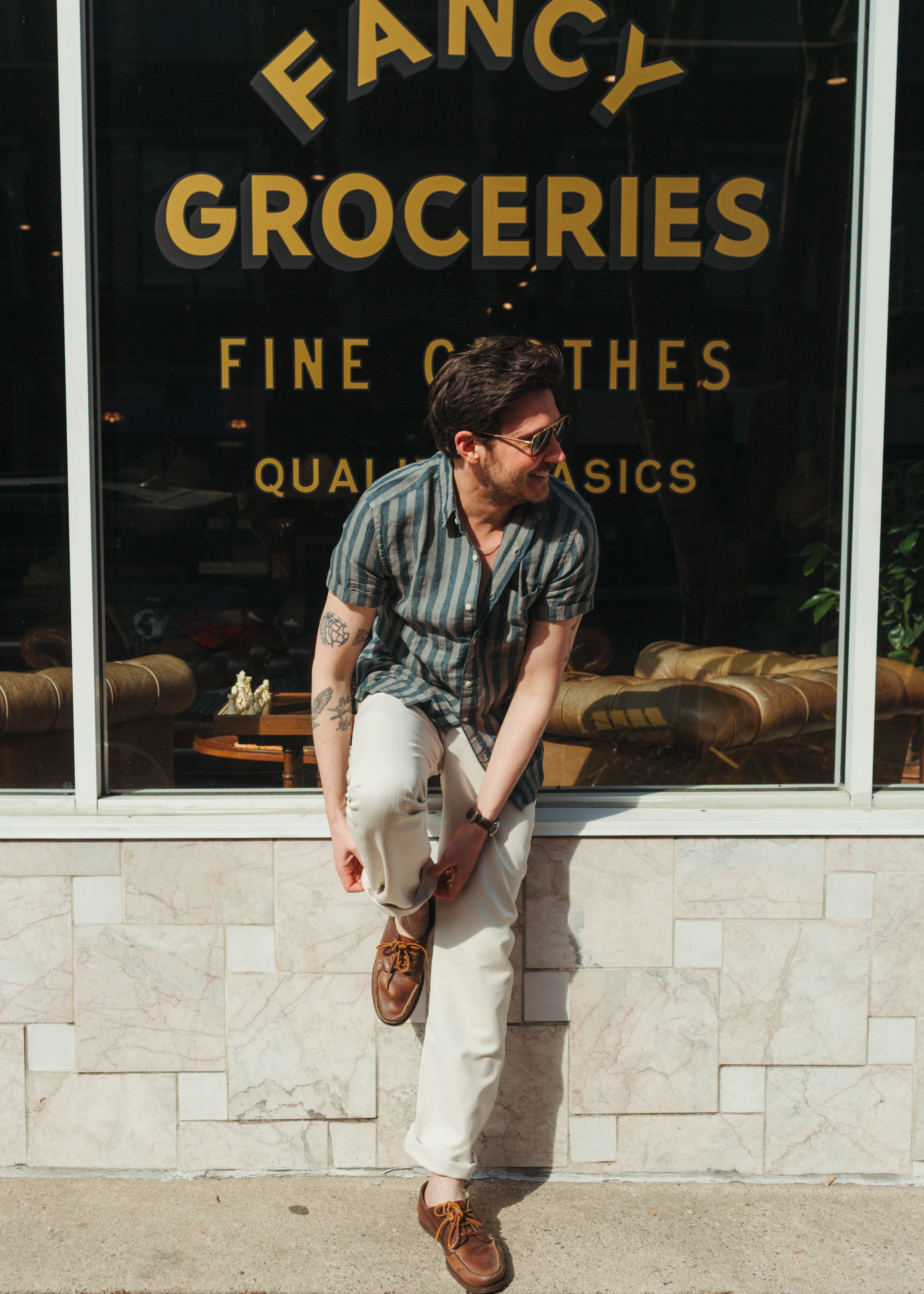 Max Dubinsky created Fancy Groceries in 2019 and has since cultivated a devoted community around timeless style, creative high quality coffees, and laid-back events.