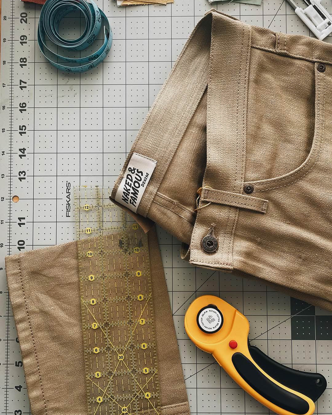 That's why you'll receive complimentary hemming and repairs on any denim or trouser purchased at the shop. If the crotch or knees blow out because you've worn them so hard, bring them back and I'll reinforce it for you. Did a button fly off your shirt? We'll sew it back on. Patchwork on any rips or tears can also be done at an additional cost.